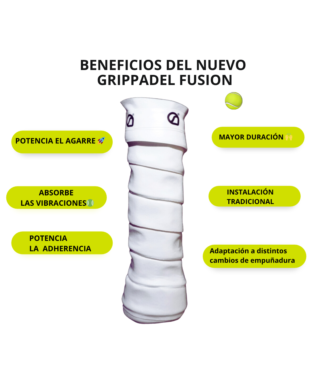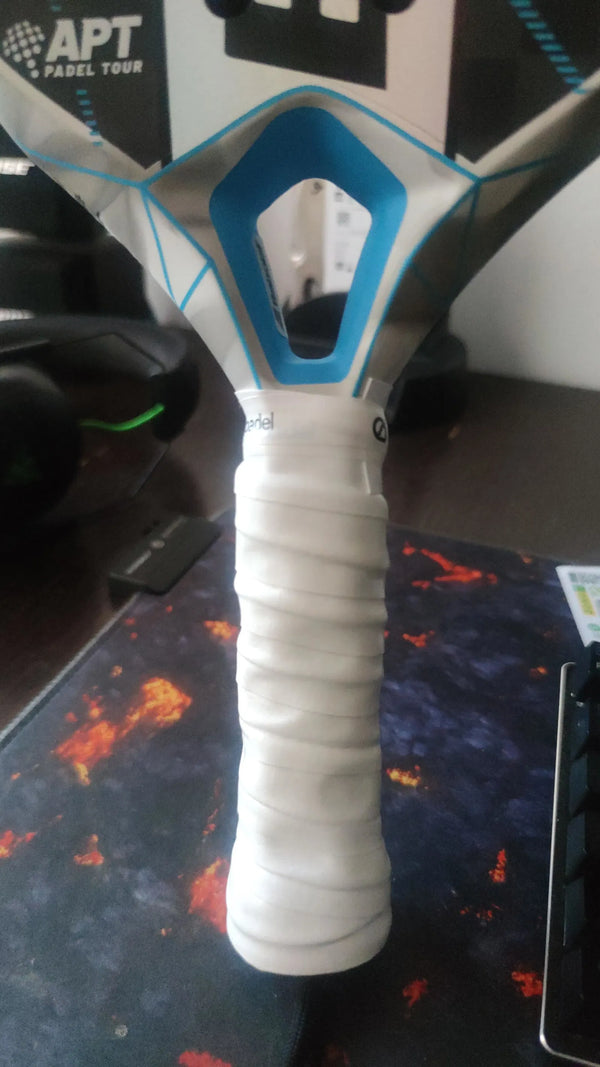 El equipo de Grippadel ha trabajado en crear uno de los mejores overgrips del mundo, gracias a la estructura acolchada de 2mm formada por una geometría que se adapta a la forma de tu mano junto a un overgrip blanco de alta adherencia y tacto suave, potencia tu agarre como nunca antes