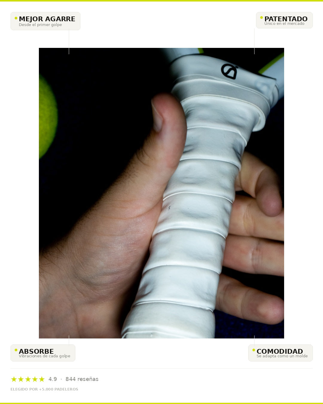 "La adherencia de este nuevo overgrip es BRUTAL! Además su durabilidad es mayor que otros."